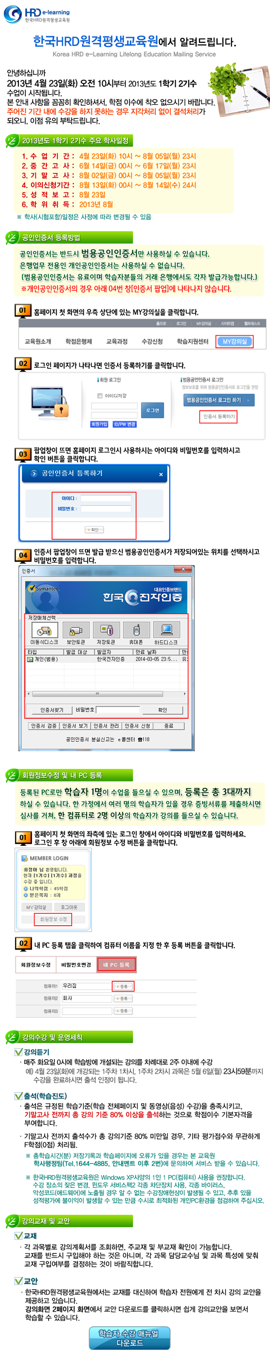 [안내]2013년도 1학기 2기수 학습자 대상 공지